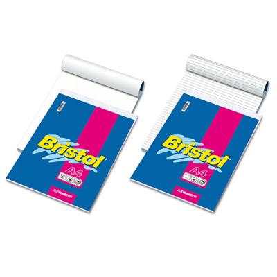 Blocco assemblato con punti metallici,formato A5, 60 fogli da 50 gr/mq in carta bianca finisssima .Copertina in carta patinata e fondo rigido in cartoncino pesante. Perforazione extra precisa per uno strappo perfetto