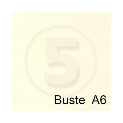 Busta in carta vergata composta da 75% pura cellulosa ECF e 25% fibre di cotone. Taglio a punta gommato.