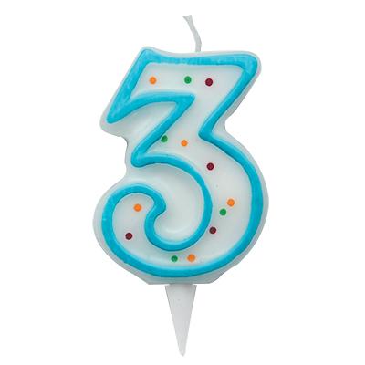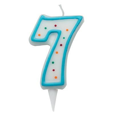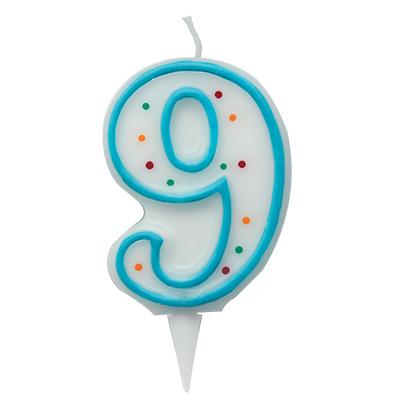 Candela numero da 8,5 cm, colore celeste; numero 1