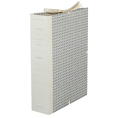 Cartella archivio rivestita con carta usomano e lacci ancorati con occhielli metallici. Dimensioni cm.35x25x15.