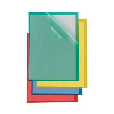 Cartellina a L in PVC colorato trasparente lucido ad altissimo spessore. Lunetta laterale per facilitare inserimento estrazione del contenuto. I fogli non scivolano e non aderisce il toner. Dimensione cm 21x29,7. Colore verde.