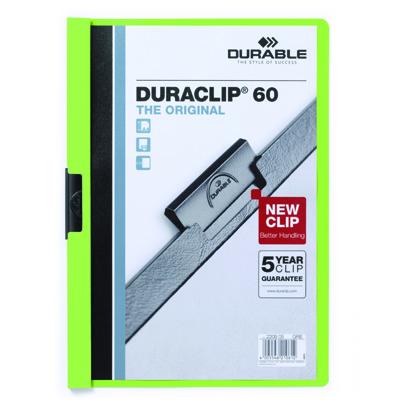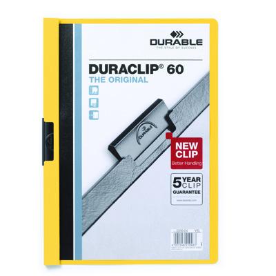 Cartellina in PVC con fondo colorato e frontale trasparente, con molla in acciaio sul dorso. Due diverse capacità: da 1 a 30 fogli A4 e da 1 a 60 fogli A4.