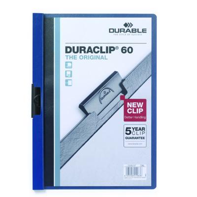 Cartellina con clip realizzata in PVC di alta qualit con clip in acci aio, copertina trasparente e retro colorato. La clip si adatta al numero di fogli inseriti e il suo perfetto funzionamento garantito 5 ann i. Ideale per presentare e archiviare, in modo professionale, documenti non perforati: tira la clip - inserisci i documenti - riposiziona la clip - semplice! Con DURACLIP i v ostri fascicoli avranno sempre un aspetto professionale, ordinato e organizzato. Capacit 1-60 fogli form ato A4.