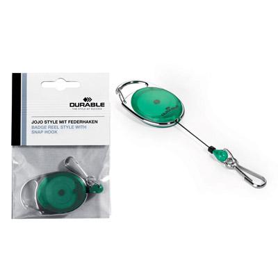 Chiocciola yo-yo ovale con aggancio a clip in metallo e corpo colorato. Dotata di filo retrattile e moschettone. Il gancio integrato nella chiocciola permette un fissaggio sicuro ad asole e passanti.Lunghezza filo: 80 cm. Può essere utilizzata con tutti i tipi di portanome e porta badge. Colore rosso.