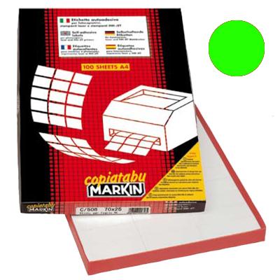 Etichette autoadesive di vari colori fluorescenti in confezione da 100 fogli in formato A4.