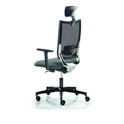 Seduta semidirezionale ergonomica girevole con base e ruote in nylon nero e rivestimento in PPL , elevazione a gas, meccanismo synchro, meccanismo anti shock, meccanismo a contatto permanente, dotata di supporto lombare regolabile, struttura in alluminio pressofuso. Altezza totale: 118-129, profondit totale: 68, altezza schienale: 72, larghezza schienale: 45, larghezza seduta: 49, profondit sedile: 48. Braccioli in clusi. Certificazioni Certificazione EN 1335, A norma DL nr. 81, gas certificato TUV.