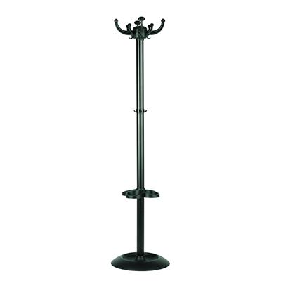 Appendiabiti con 4+4 agganci con tubolare in acciaio grigio e agganci, base e portaombrelli in plastica nera.