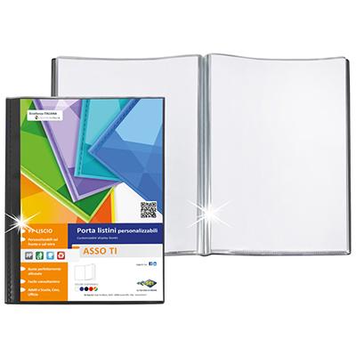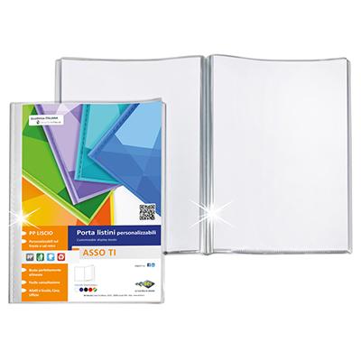 Porta listini in polipropilene colorato e trasparente con copertina e retro personalizzabili. Il perfetto allineamento delle buste permette di consultarli agevolmente. Contiene 150 Buste in PP liscio.