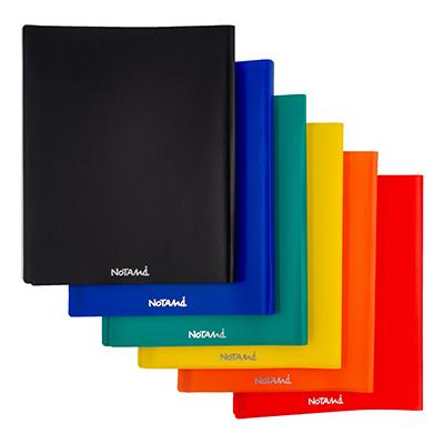 Portalistino in polipropilene con copertina flessibile colorata. Le buste interne sono fisse e aperte sul lato superiore con finitura liscia in 8 diverse fogliazioni, colore rosso.