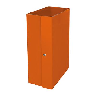Scatola portaprogetti realizzata in robusto fibrone goffrato extralucido biverniciato ecologico dello spessore di mm.1,1 con alette saldamente applicate sul quadrante interno mediante 6 rivetti, i 3 bottoni a pressione in acciaio brunito consentono un facile montaggio ed una sicura chiusura, adatta per l'archiviazione e la consultazione di qualsiasi tipo di documento, fornita smontata per ridurre l'ingombro e facilitarne il trasporto.