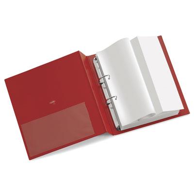 Raccoglitore in cartone accoppiato e rivestito in PVC, dotato di tasca trasparente interna.