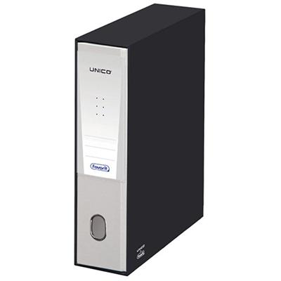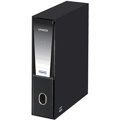 Registratore in polipropilene con l'anima di cartone da 2,2 mm. Custodia in cartone microonda accoppiato con carta stampata da gr. 230, meccanismo a leva interno con pressino fermafogli in acciaio inossidabile. Porta etichetta sul dorso con etichetta personalizzabile e occhiello ovale per facilitare l'estrazione dalla custodia. Disponibile anche nei moderni colori metallizzati.