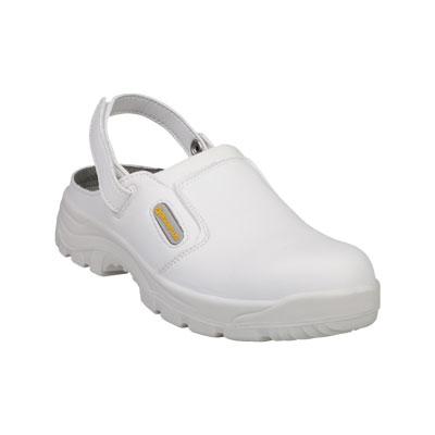 Calzatura zoccolo ideale per ambienti di lavoro in ambito agroalimentare. Tomaia in microfibra resistente all'acqua e con fodera in poliammide non assorbente ad asciugatura rapida. Soletta di pulizia preformata e staccabile, sopra poliammide su EVA. La suola iniettata PU mono d ensit. Puntale resistente agli urt i e allo schiacciamento 200j. Calzatura con tallone assorbitore di energia e suola resistente agli idrocarburi. Lavabile in lavatrice fino a 30, di facile manuntenzione. Colo re bianco, taglia 38. Ideale per ambienti di lavoro in Alimentazione/Igiene.