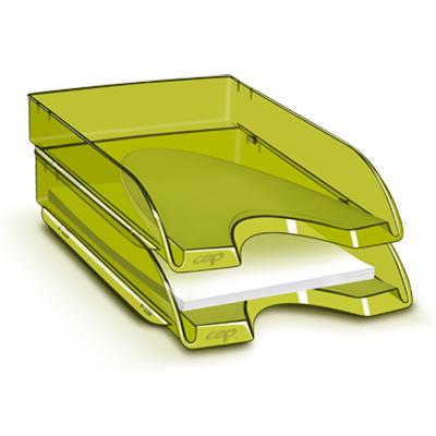 Vaschette portacorrispondenza trasparenti in colori moderni e brillanti,impilabili verticalmenteanche in posizione scalare,con taglio a "U" per un comodo accesso ai documenti e piedini antiscivolo,realizzate in polistirene riciclabile antiurto,grazie ai distanziali è possibile aumentare la capacità delle vaschette,coordinabili con gli altri accessori della linea HAPPY.