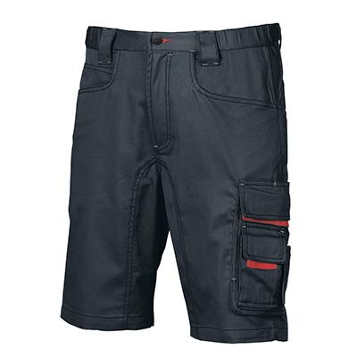 Bermuda dotato di 2 ampie tasche anteriori, tasca laterale portautensili, tasca laterale multifunzionale, portabadge, 2 tasche posteriori con chiusura di sicurezza a velcro; porta martello regolabile; regolazione in vita con elastico per massimo comfort. Supporti di rinforzo per velcri; triple cuciture. Bottone antigraffio. Pantalone ideale per agricoltori, autotrasportatori, elettricisti, idraulici, installatori, magazzinieri e muratori. Composizione: 60% cotone, 40% poliestere, twill 245 gr/m. Colore blu scuro, tagli a S.