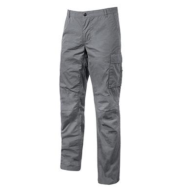 Pantalone da lavoro in tela di cotone elasticizzato. Due ampie tasche anteriori, una tasca posteriore. Tascone laterale multiuso su gamba sinistra e taschino su gamba destra. Chiusura con zip frontale e bottone antigraffio. Doppio tessuto di rinforzo sulle ginocchia e sulla parte posteriore. Vestibilit Slim-Fit. Composizione: 97% cotone, 3% spandex, 200 gr/m. Colore grigio, taglia L.