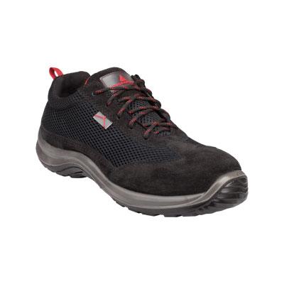 Calzatura di sicurezza bassa in pelle scamosciata e poliestere mesh. Soletta di pulizia preformata staccabile (poliestere su schiuma EVA). Suola iniettata -PU doppia densit. Scarpa amagnetica. Colore nero, taglia 48. Ideale per ambienti di lavoro in Artigianato/Bricolage, Industria Leggera e Servizi/Logistica.