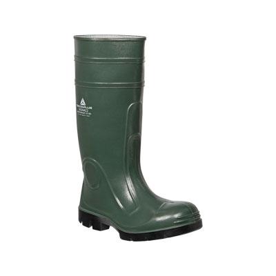 Stivale di sicurezza con tomaia e gambale in PVC senza cadmio n piomb o. Foderato in jersey e suola antiscivolo con design autopulente in PVC nitrile per resistere agli agenti aggressivi. Protezione rinforzata della tibia, del malleolo e del tallone. Dotato di puntale e lamina in acciaio. Massimo comfort grazie al sottopiede anatomico ed al puntale a base larga. Antistatica. Colore verde, numero 46. Ideale per ambienti di lavoro in Edilizia, Artigianato/Bricolage e Agricoltura.