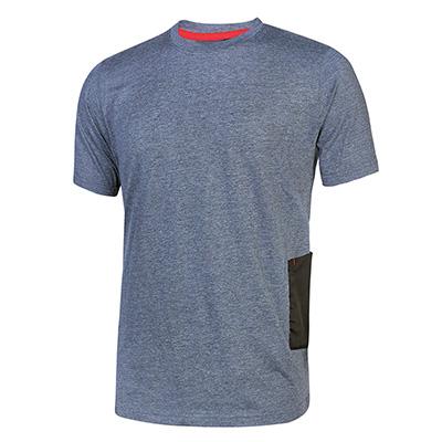 T-shirt manica corta in jersey di polycotone, vestibilit slim-fit. Co llo e bordo manica a costine elasticizzate. Fettuccia para-sudore rossa. Tasca porta cellulare sul fianco sinistro con travetta rossa. Nastro rosso/reflex su manica destra. Composizione: 65% cotone, 35% poliestere, 185 gr/m. Colore blu scuro, t aglia M.
