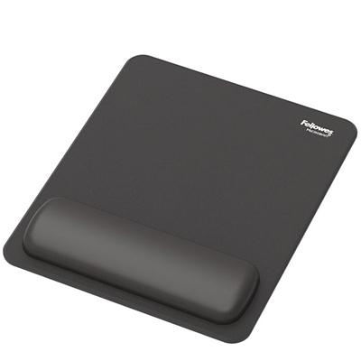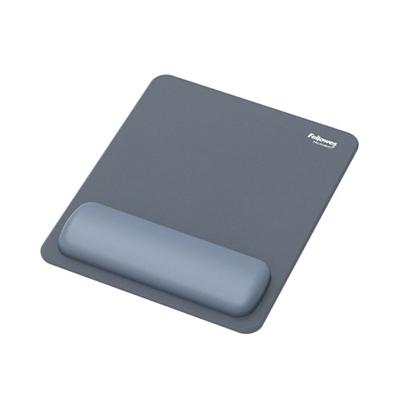 Tappetino per mouse ergonomico con poggiapolsi integrato per ridurre affaticamento e pressione sul polso. Dotato di base antiscivolo e realizzato con materiale riciclato.