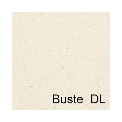 Buste in carta con impasto di fibra riciclata di pura cellulosa, fibre di cotone e pura cellulosa ECF. Taglio quadro gommato.