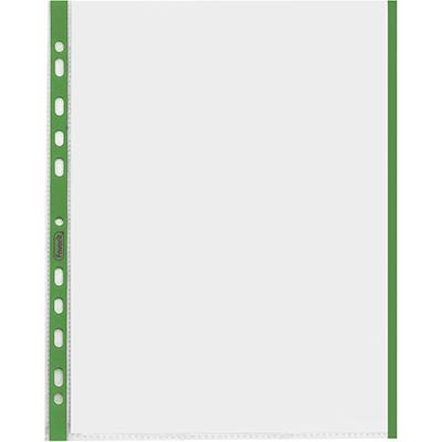 Buste con foratura universale rinforzate colorate, realizzate in naturene (polipropilene) antiriflesso, dotate di banda di rinforzo e bordi colorati per un'immediata identificazione del contenuto