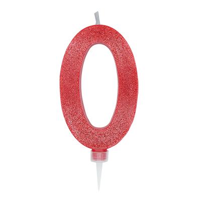 Candela numero maxi da 15 cm rosso glitter; numero 6