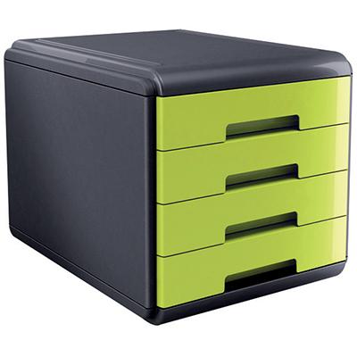 Cassettiera a 4 cassetti, formato utile cm.25x33 altezza cm.4,5,a scorrimento silenziato con blocco di fine corsa e foro sulla base per una più comoda presa dei documenti.Scocca in polisitrolo,è affiancabile e sovrapponibile grazie alle corsie integrate.