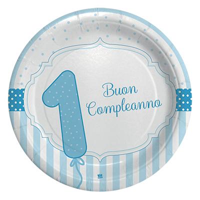Piatti in carta per festaggiare il Primo compleanno, colore rosa; cm 18, pz.8