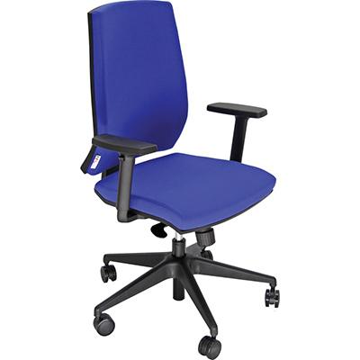 Seduta operativa girevole con elevazione a gas, meccanismo synchro con 4 blocchi anti shock, meccanismo a contatto permanente, schienale regolabile up-down, supporto lombare regolabile, base e ruote in nylon nero e struttura in acciaio nero. Altezza totale: 102 113, profondit totale: 68, altezza schienale: 52, larghezza schienale: 45, larghezza seduta: 47, profondit sedile: 47. Senza braccioli. Certificazione EN 1335, a norma DL nr. 81, gas certificato TUV.