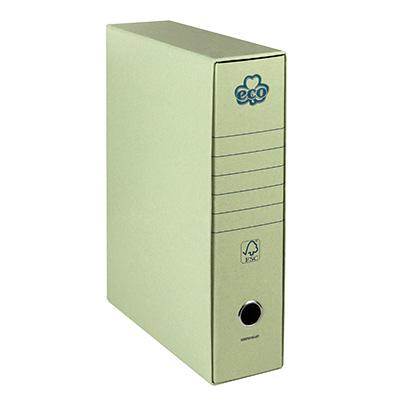 Registratore con custodia e cartella rivestite in carta riciclata tono su tono, meccanismo a leva, risguardo in carta riciclata tono su tono. Prodotto certificato FSC. Dimensioni cm.35x28,5x8.