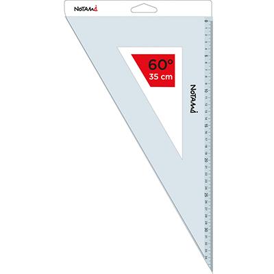 Squadra per uso tecnico e scolastico, realizzato in polistirolo di prima scelta di elevato grado di trasparenza e durezza superficiale che garantisce resistenza e durata nel tempo. Bordo tira-china sui lati. Busta appendibile.